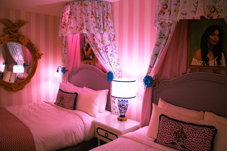 Your honky-tonk haven trimmed in pink is equipped with everything you need for your Nashville trip. Standard rooms include an HD TV, refrigerator, safe, and plenty of places to stow your luggage. Need to fit in some work in between hitting all the nearby shops and attractions? No worries. The room has a glamorous workspace desk and complimentary Wi-Fi for those 9 – 5 queens. After exploring the Nashville nightlife, the comfy triple-sheeted bed adorned with a floral print curtain canopy serves as the perfect reprieve.